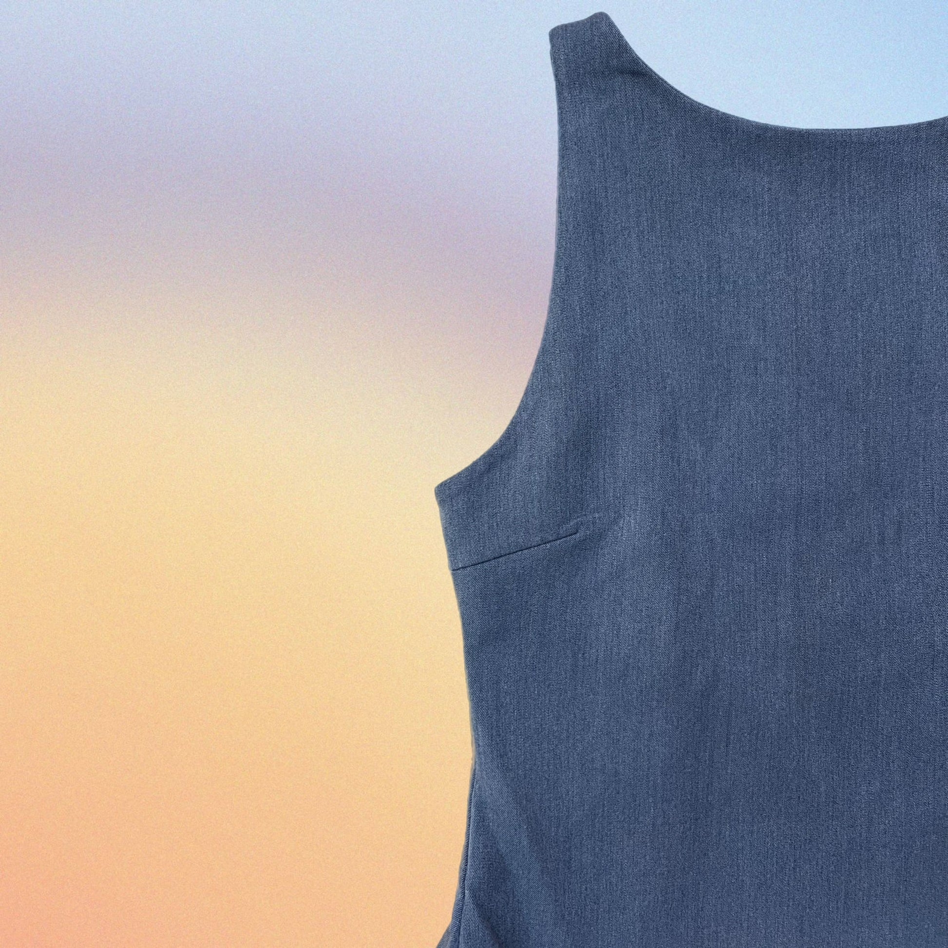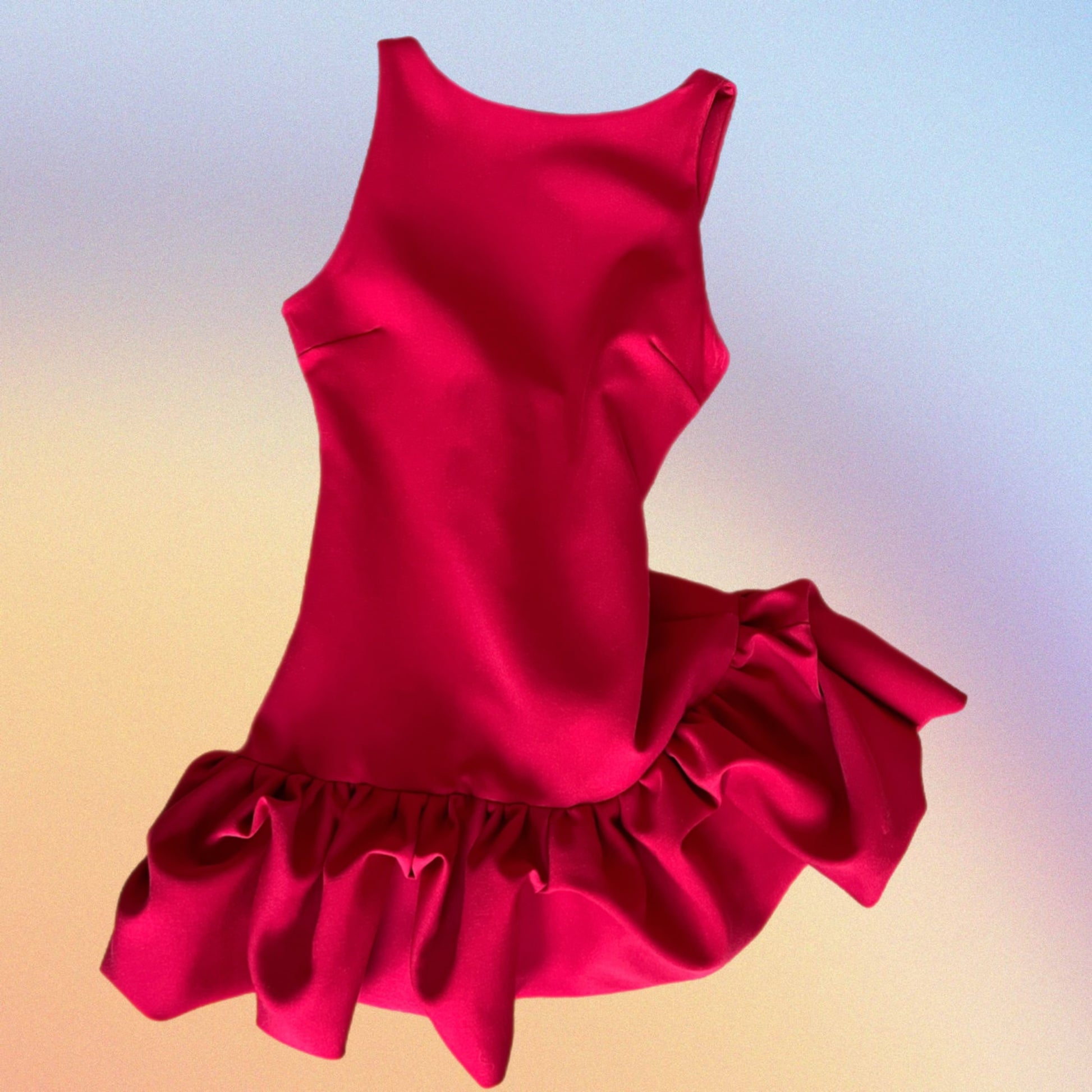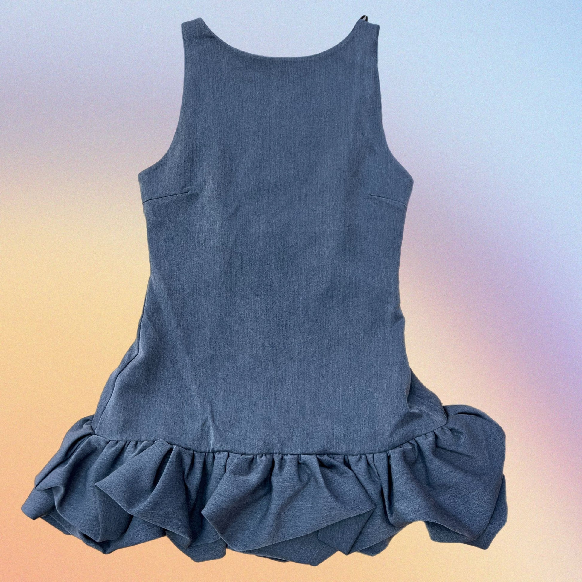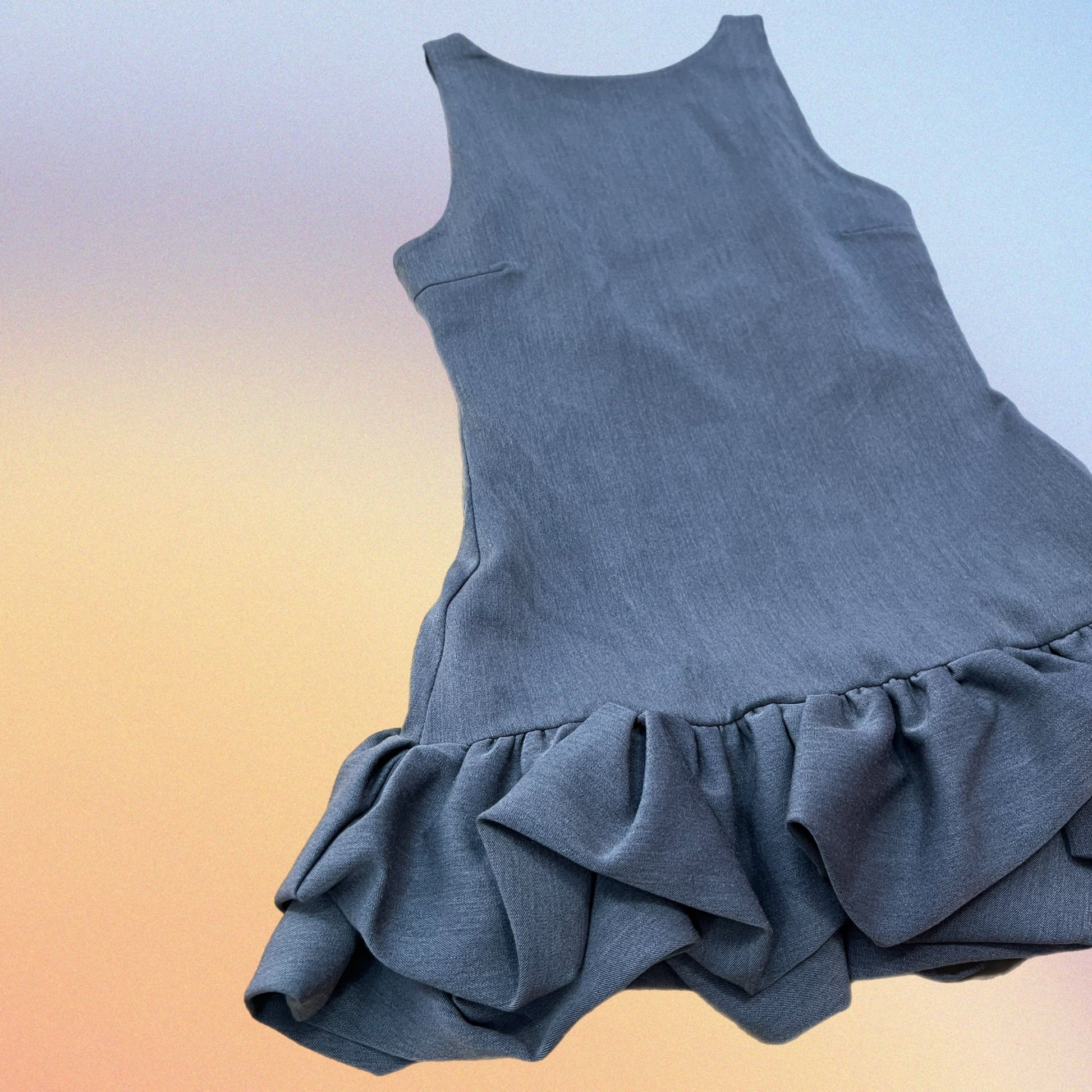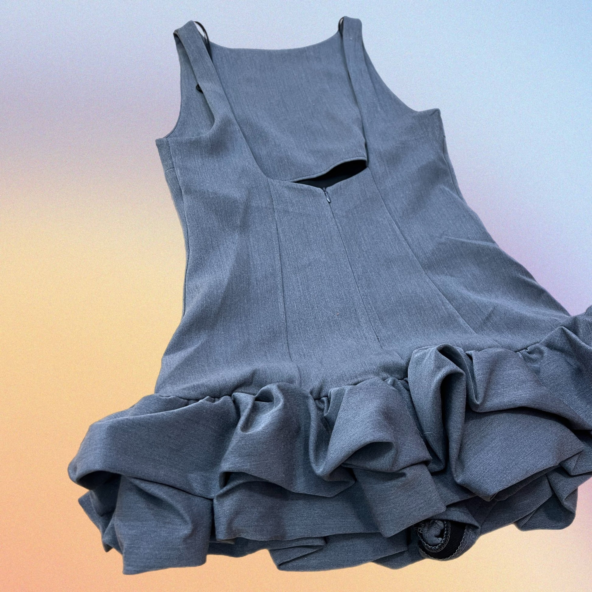Abito/tutina con pantaloncino incorporato e dettaglio goona rouche. Scollo profondo sulla schiena.