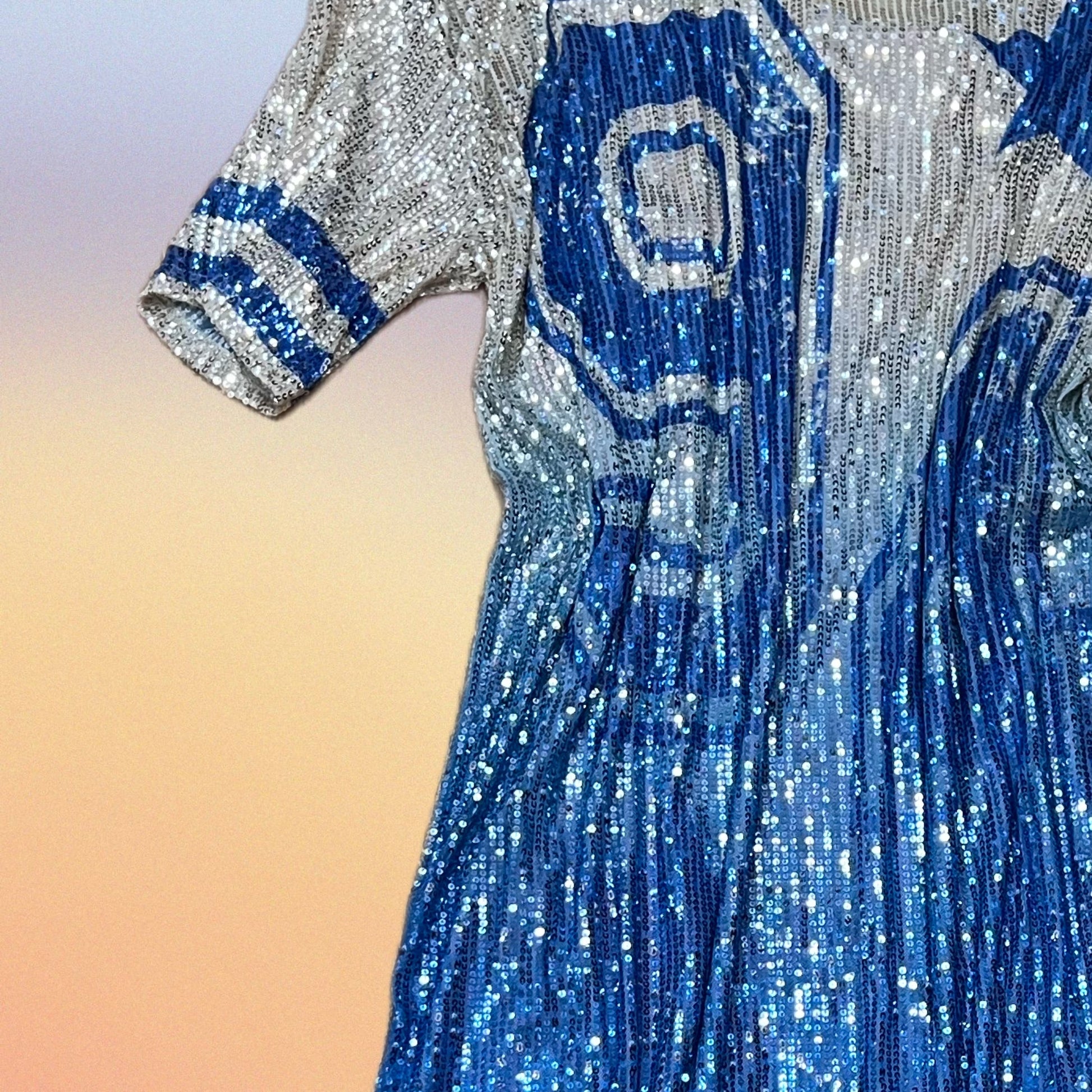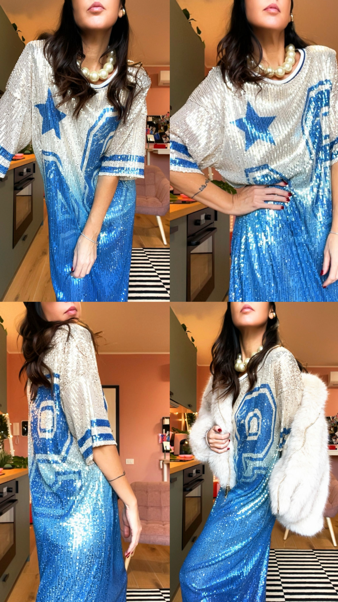 Abito in pailette con sottoveste in jersey elasticizzato. Grafica 9 maxi e stella.