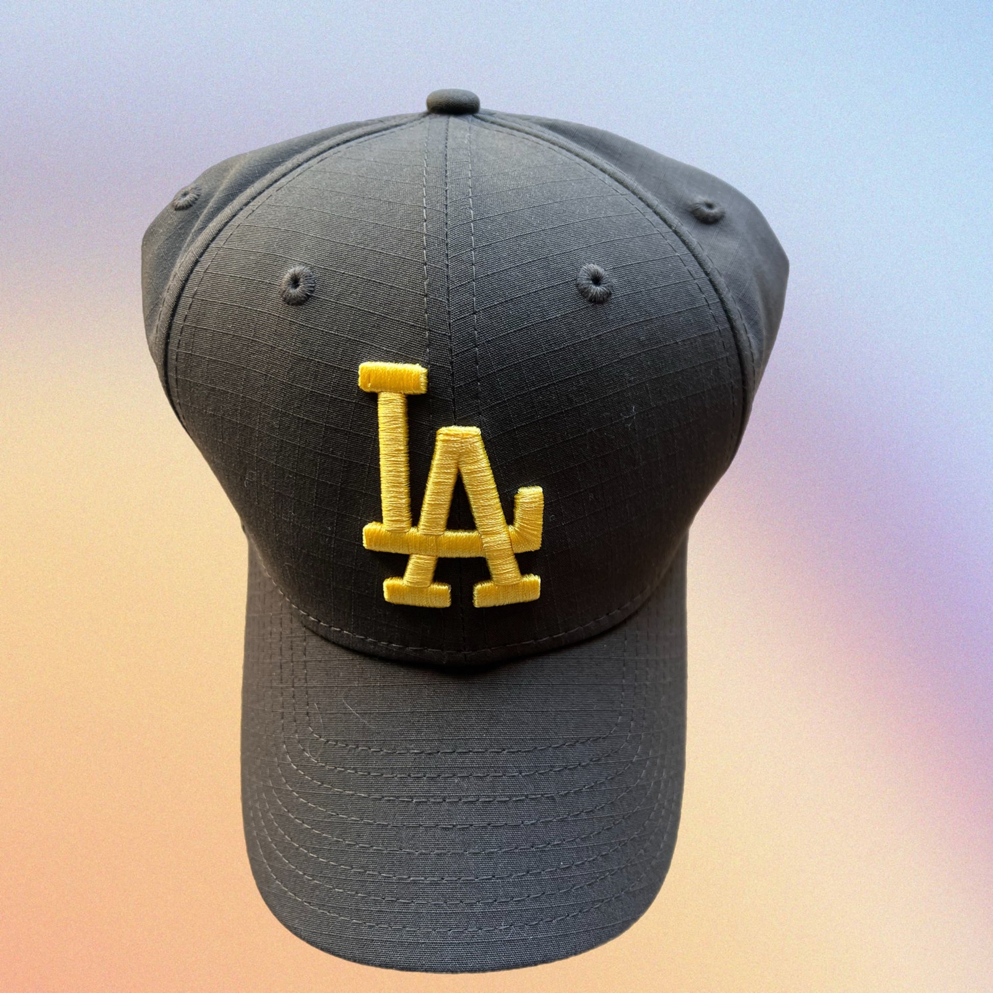 Cappello New Era color fango con ricamo LA in giallo. Vestibilità regolabile.