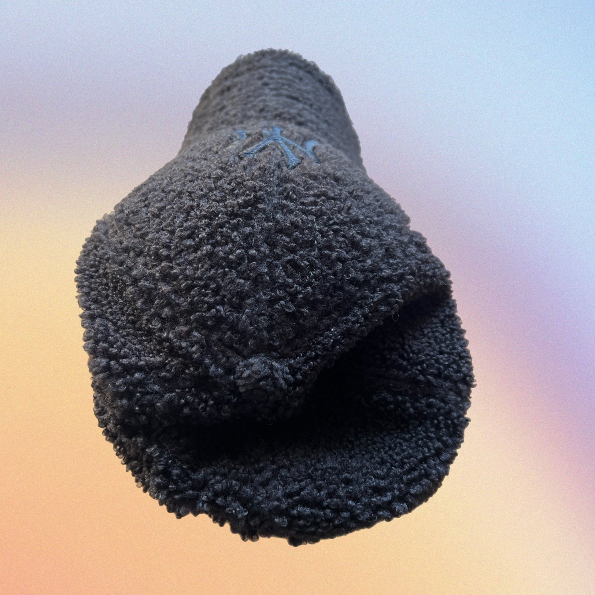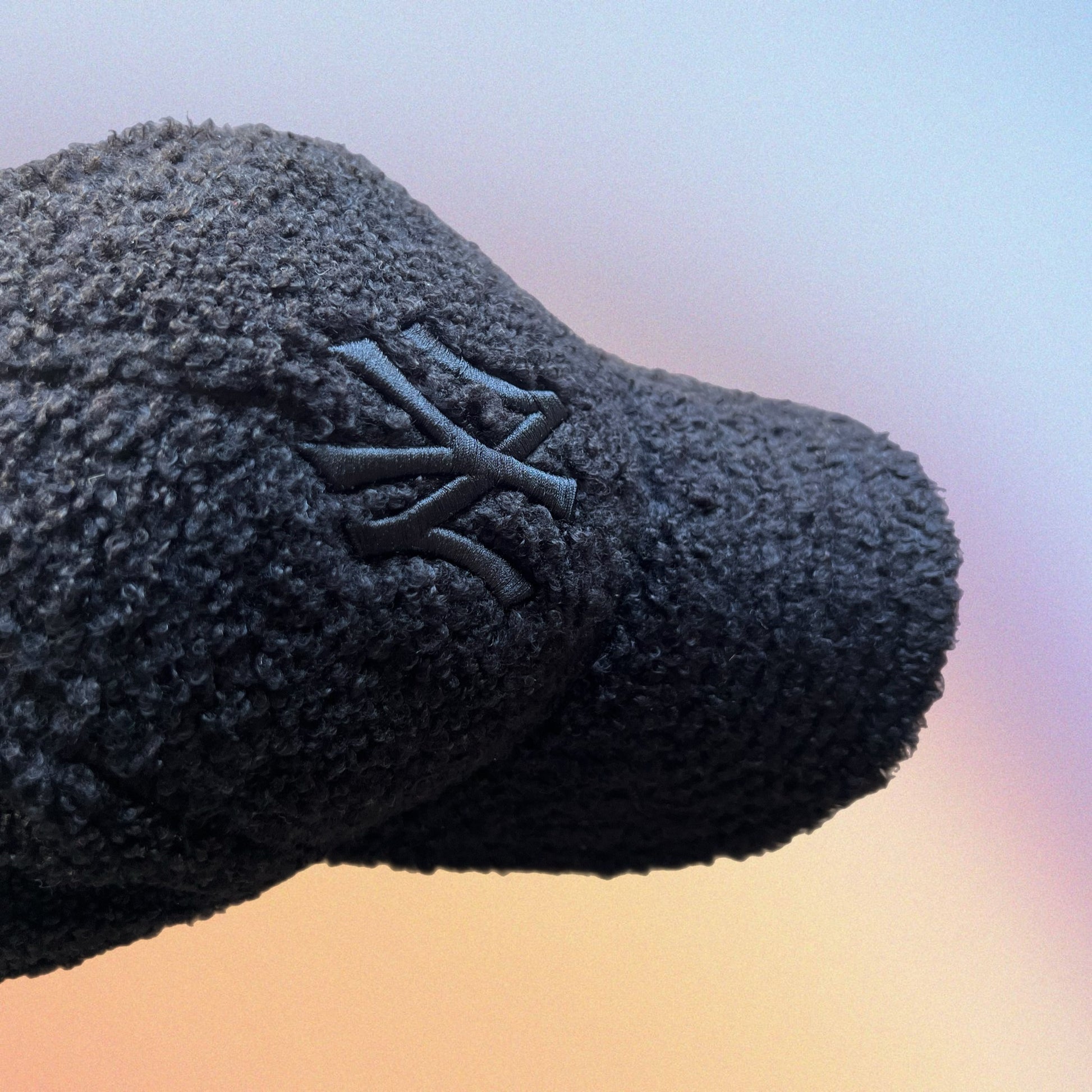 Cappello New Era in tessuto bouclet nero con ricamo NY nero tono su tono. Vestibilità regolabile.