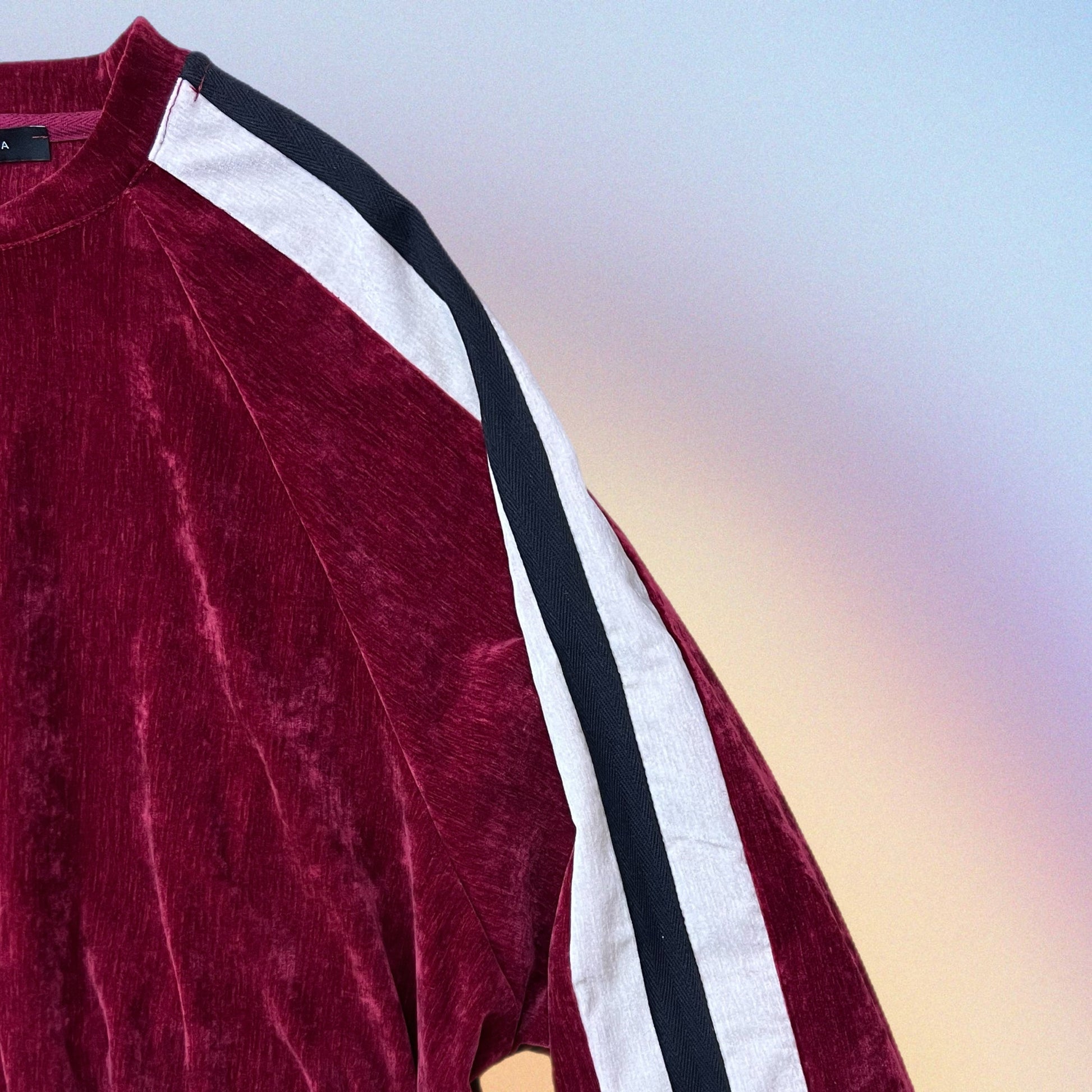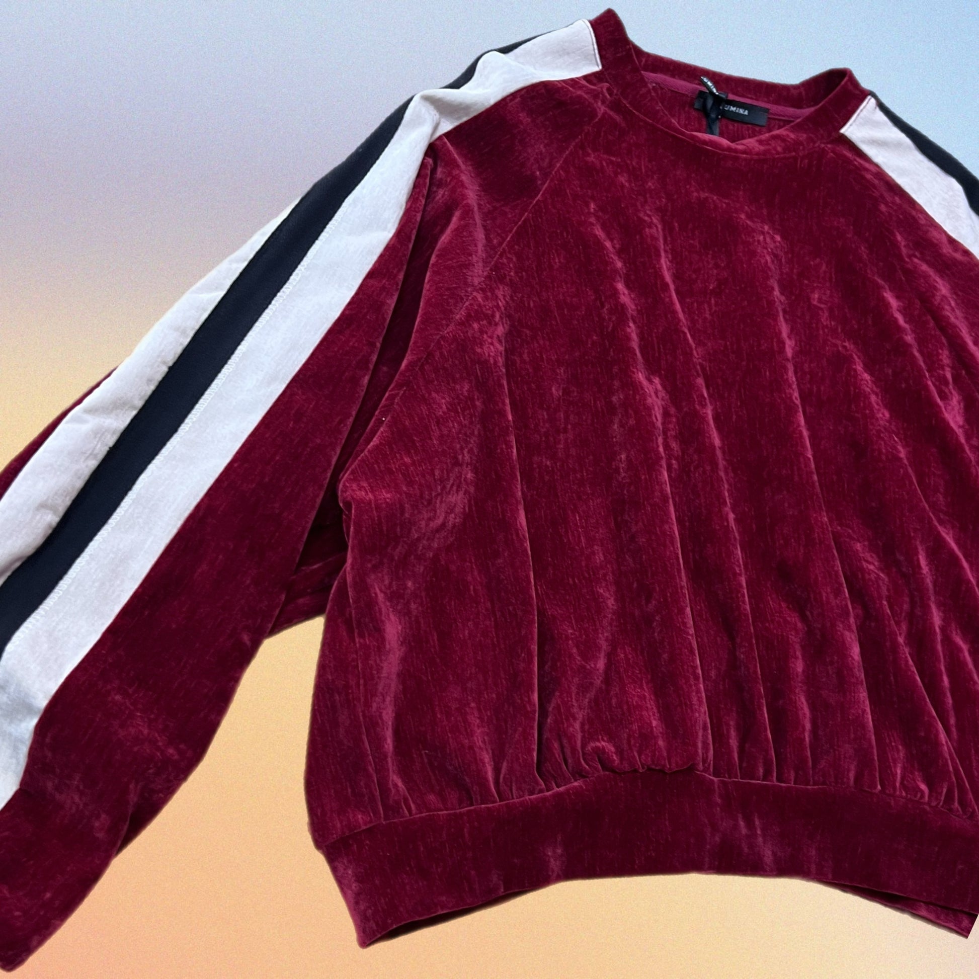 Felpa realizzata in tessuto velluto.Presenta collo rotondo.Rifinitura all'orlo e sui polsini.Vestibilità regolare, disponibile in taglia S/M, M/L.