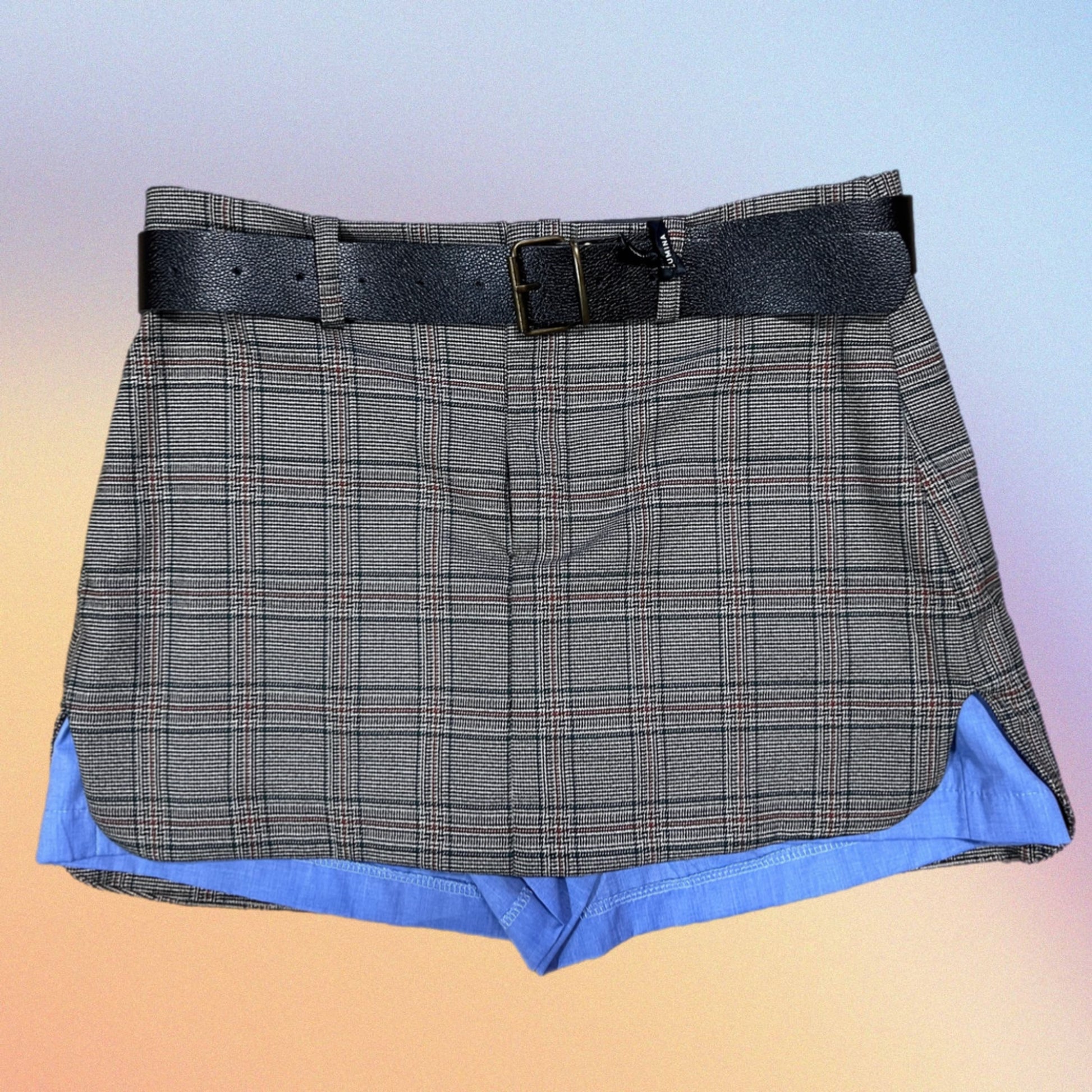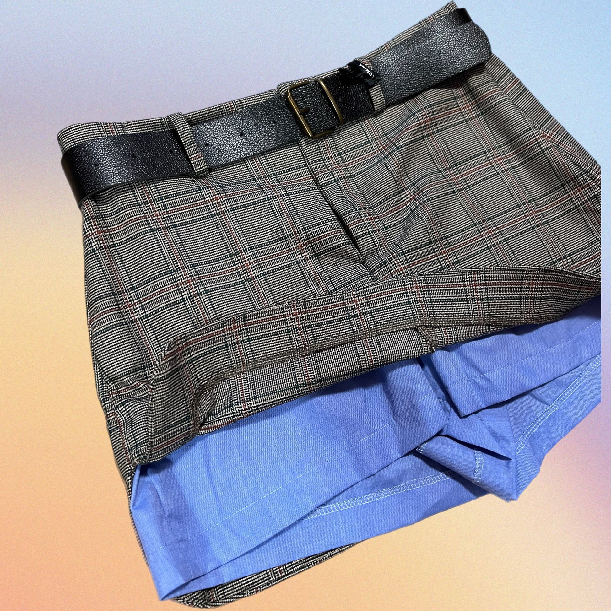 Mini gonna a pantaloncino. Chiusura con gancetto. Cintura inclusa. Fantasia Principe di Galles. Vestibilità regolare disponibile in taglia S/M o M/L