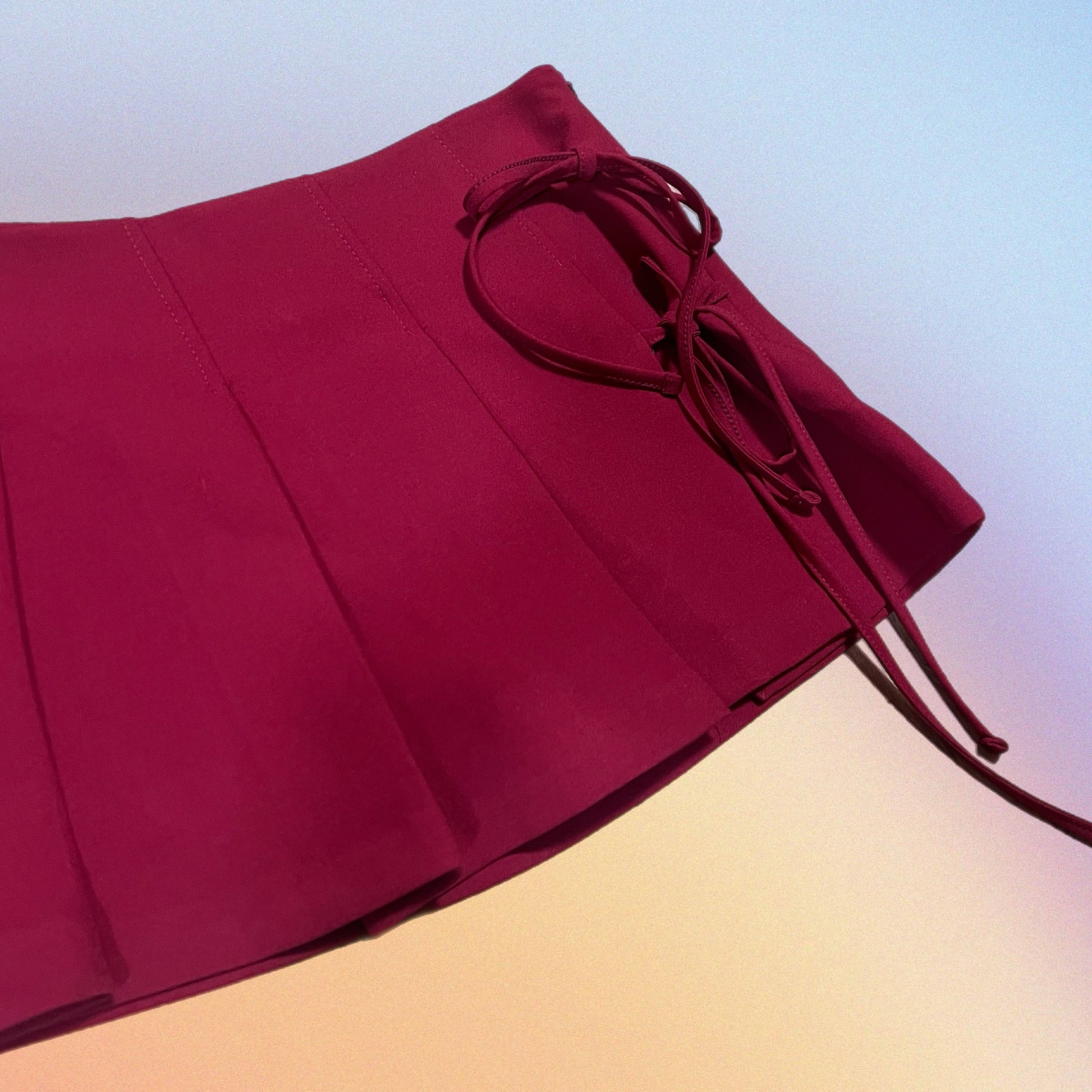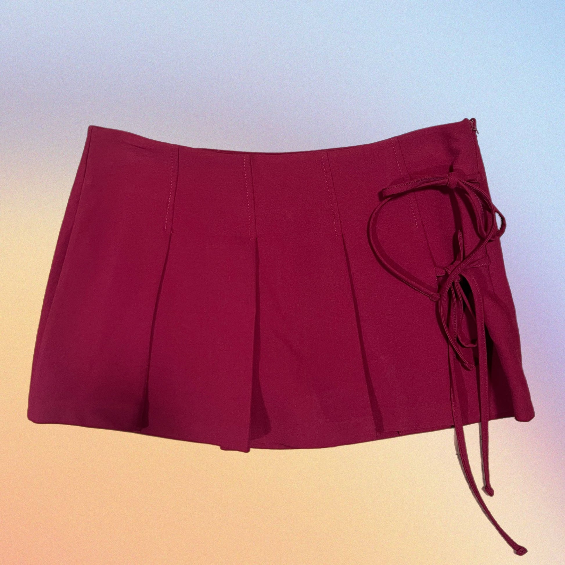 Gonnellina pieghe con pantaloncino incorporato e fiocchetti laterali. Si chiude con cerniera.