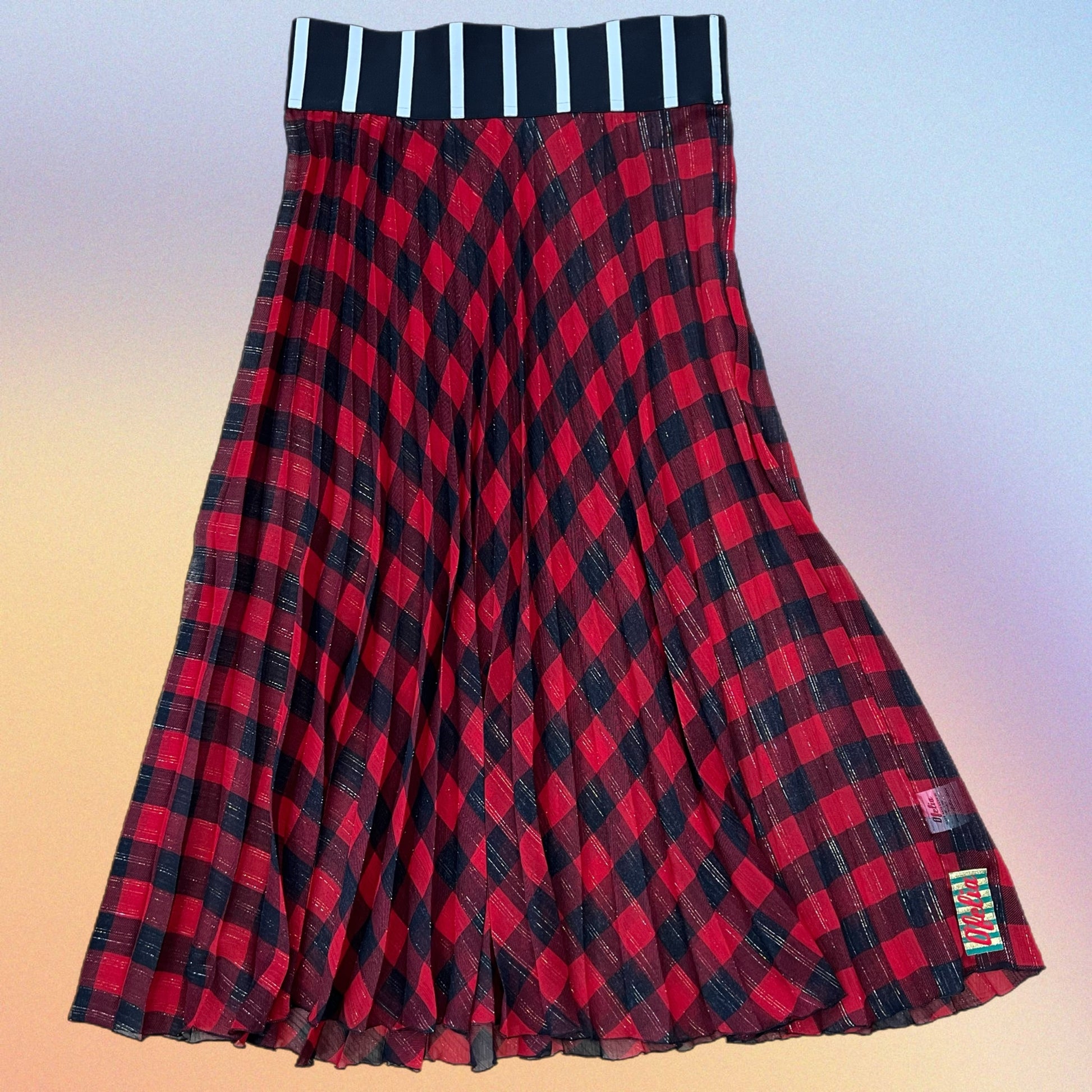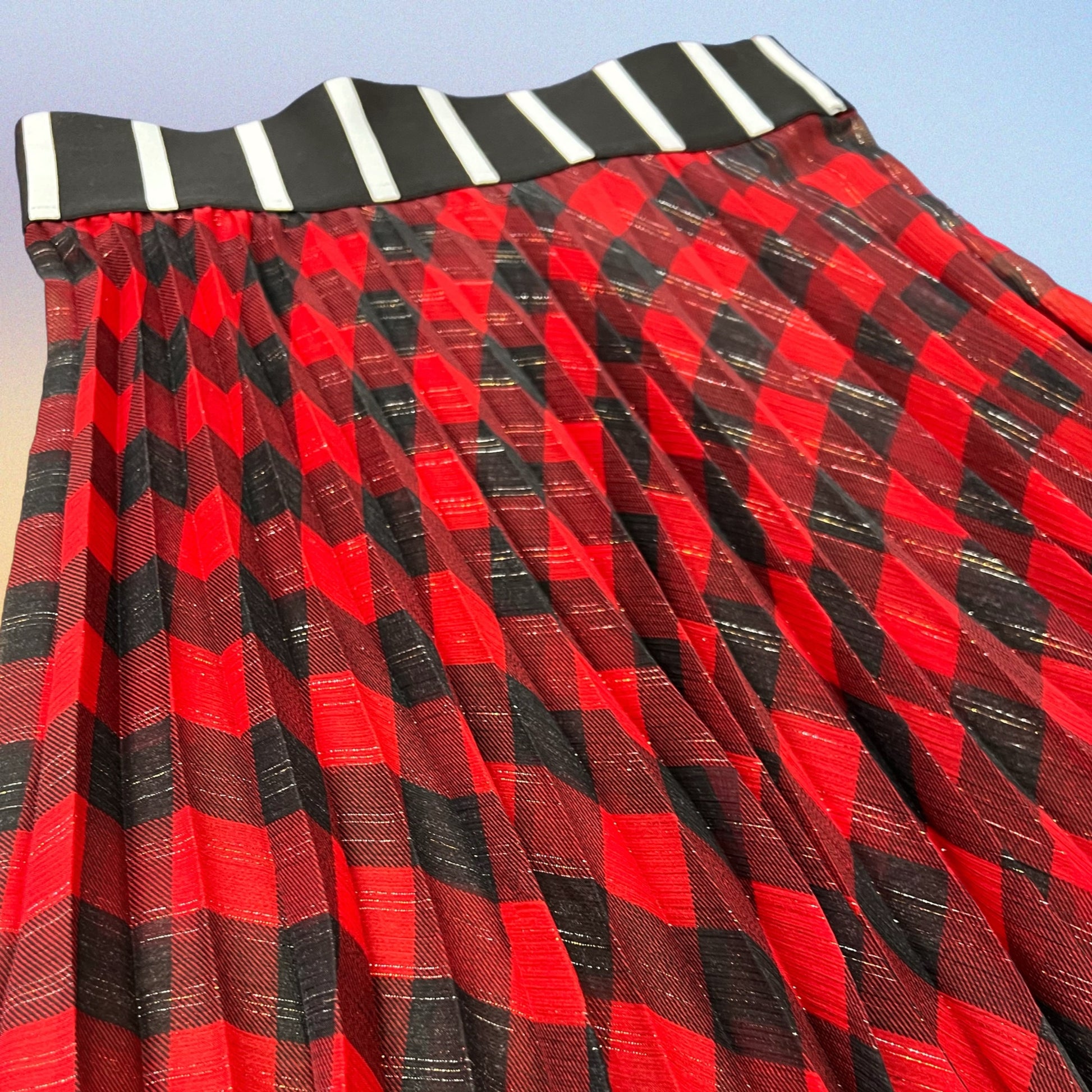 Gonna Midi in tessuto Chiffon plissettato. Banda elastica in vita. Pezzo Unico. Taglia Unica