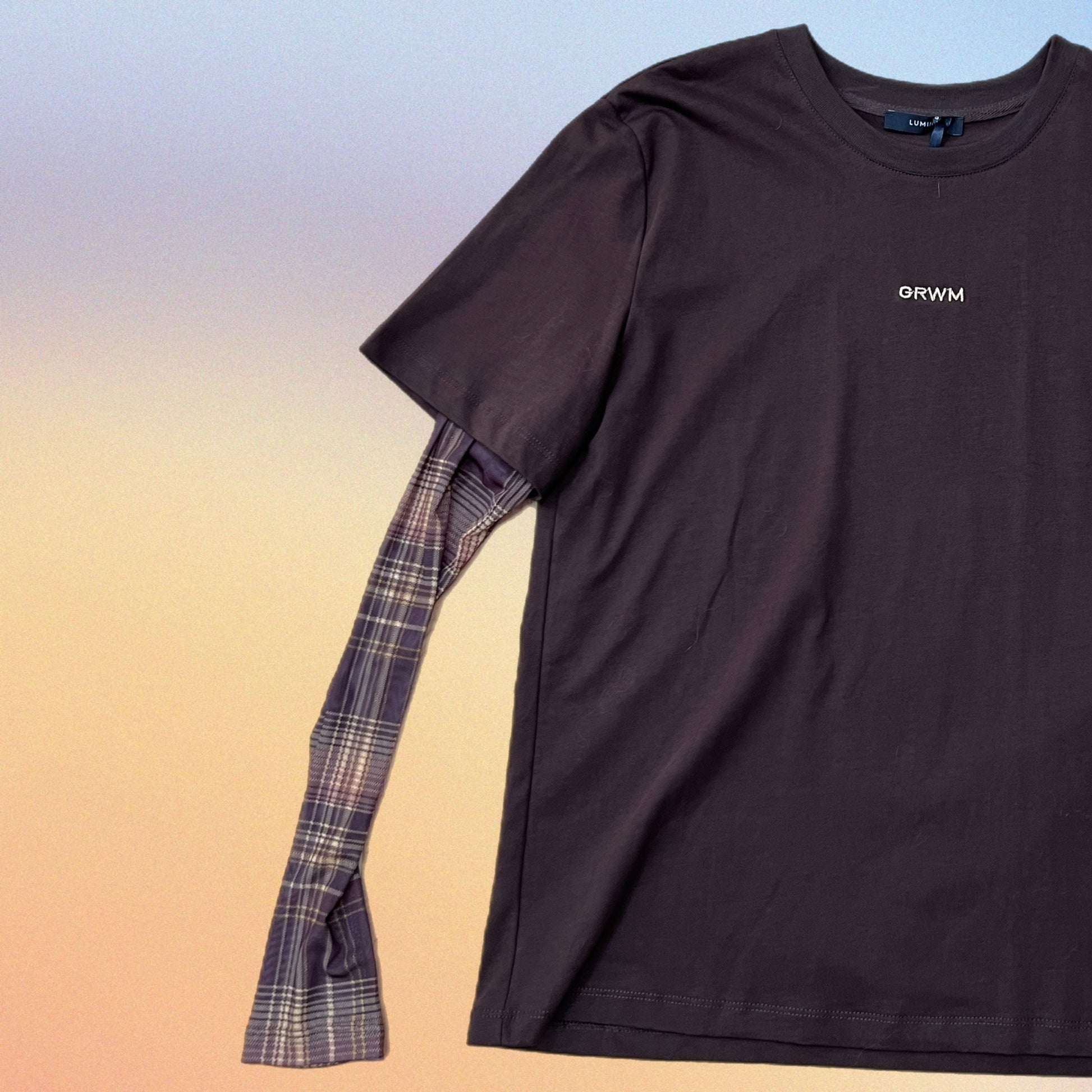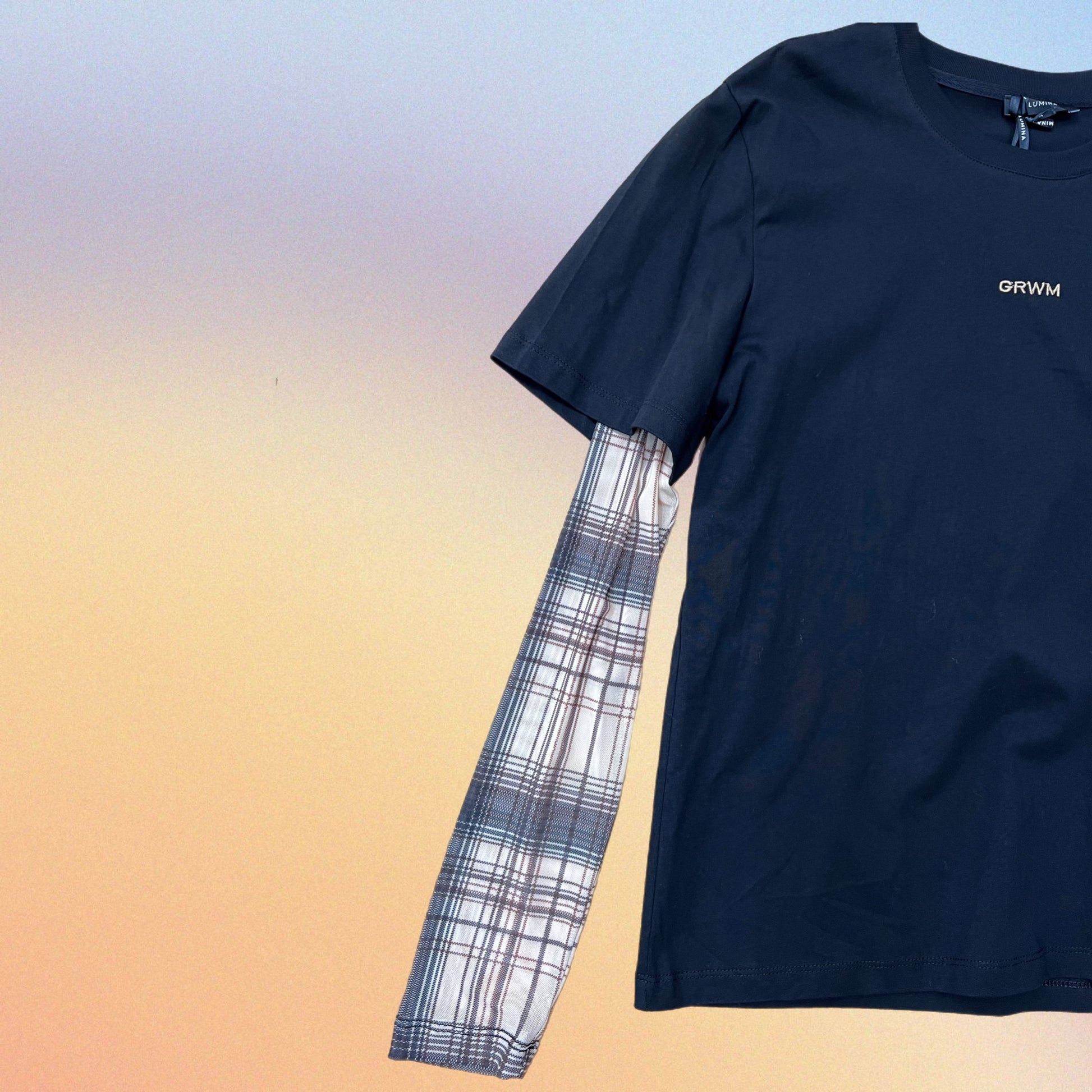 Maniche in tulle con fantasia a quadri.Collo rotondo e scritta ricamata.Fit regolare, disponibile in taglia UNICA.