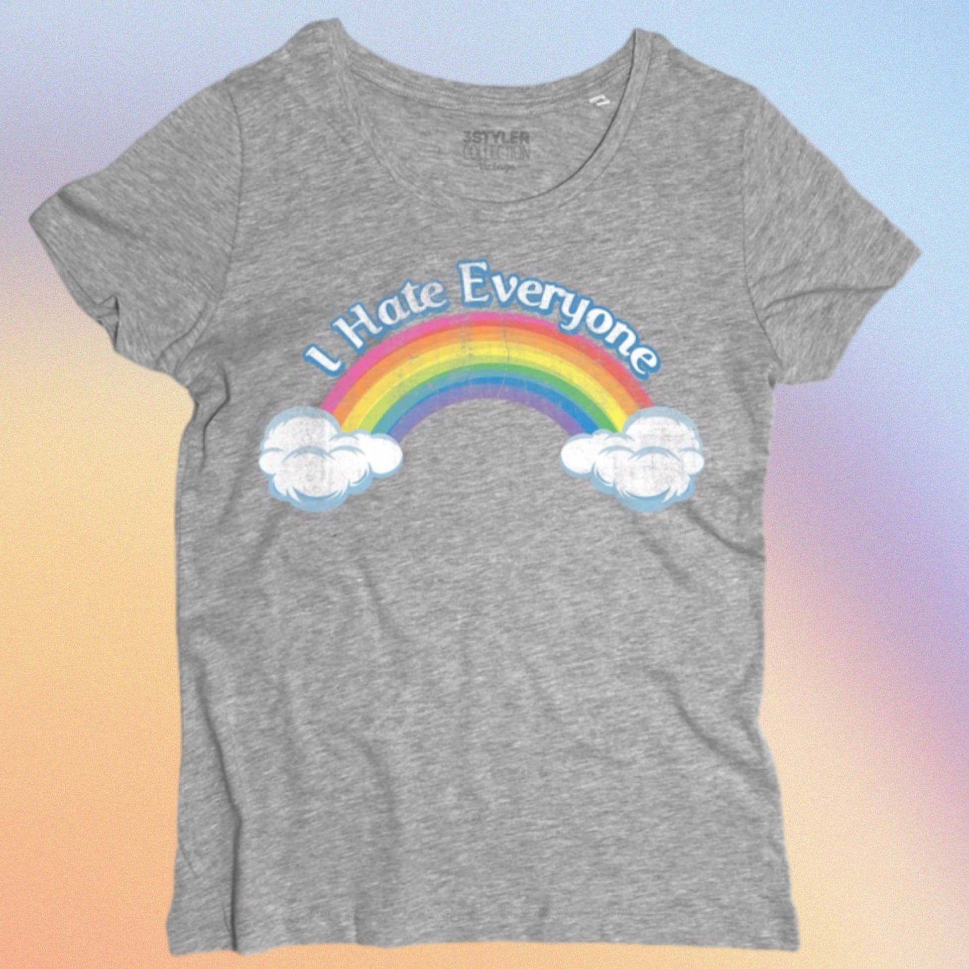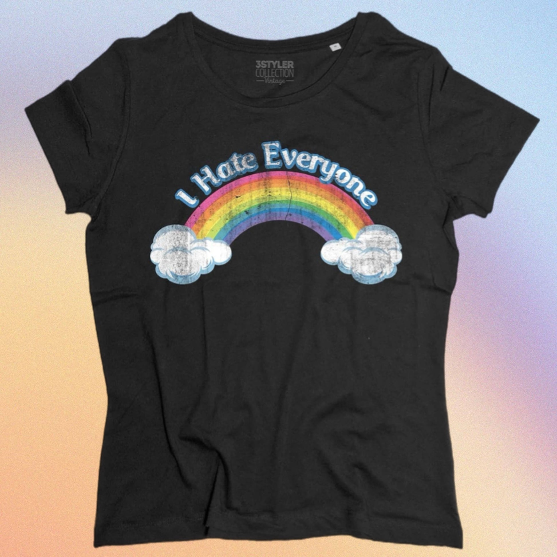 T-Shirt Donna I Hate Everyone - Io odio Tutti - Linea Vintage - Cotone Organico 140 gr/mq